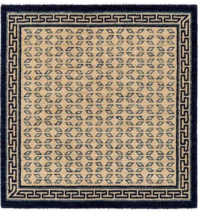 This ivory and blue all wool rug with bamboo silk accents reflects the Tibetan love of geometric shapes. It is soft but highly resilient and a beautiful but practical addition to any setting. This rug is part of the Tibetan Hybrid Collection created by Tibetan Rug experts, InnerAsia Rugs. It was made on a mechanized loom with the exacting attention to detail and masterful interplay of color and texture that captures the essence and appeal of Tibetan hand crafted carpets. Designed and created by InnerAsia Rugs China.