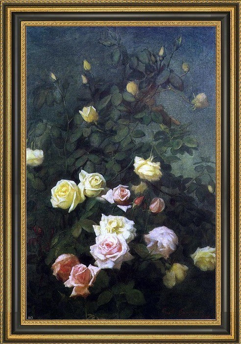 George Cochran Lambdin Roses Framed Premium Canvas Print, 18"x27"