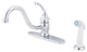 Single Handle Deck Mount, 2 or 4 hole Sink application, 8" Centerset, Non-Metallic (ABS) Side Spray, Fabricated from solid brass material for durability and reliability, Victorian swivel spout rotates 360 degrees, stainless steel ball with Joystick type control mechanism, Flexible supply lines with 1/2" - 14 NPS male threaded inlets, Stainless steel ball valve, 1.8 GPM / 6.8 LPM Max at 60 PSI, Integrated removable aerator, 9-1/8" spout reach from faucet body, 7-1/2" overall height. Stainless Steel Ball Cartridge Single Georgian Metal Lever Handle 9 1/8" Victorian Spout 4 Hole Installation with 5" spout clearance