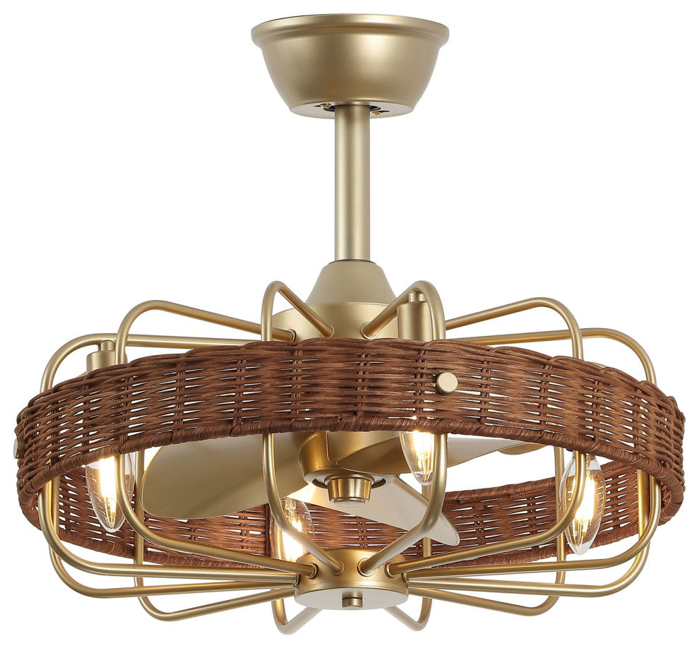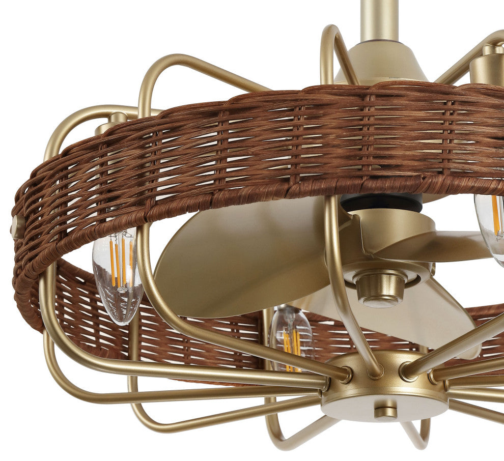 GetLedel 18" Rattan Ceiling Fan With Remote and Light, Gold/Walnut