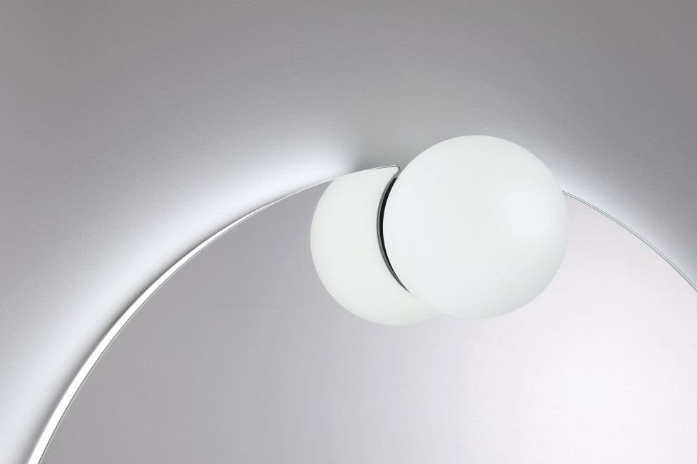The Gia Mirror in a larger 37" x 37" size brings elegance and functionality to any space. Perfect for contemporary homes, this round LED mirror features opal glass for a modern touch and an integrated LED system with adjustable brightness, offering a perfect balance of style and utility in damp areas such as bathrooms or hallways. This product is cETLus certified.•Number of Lights: 1•Bulb Type: LED integrated•Wattage: 47W•LED Color Temperature (K): 3000/4500/6400K•Dimmable: Yes•Bulb Included: Yes•Voltage: 120V•Hardwire or Plug-in: Hardwired