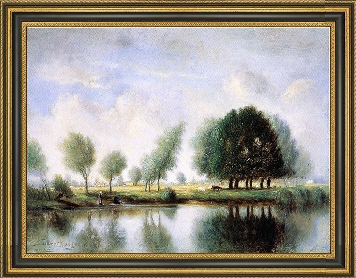 21" x 28" Gilbert Munger Near Reuilly framed premium canvas print reproduced to meet museum quality standards. Our Museum quality canvas prints are produced using high-precision print technology for a more accurate reproduction printed on high quality canvas with fade-resistant, archival inks. Our progressive business model allows us to offer works of art to you at the best wholesale pricing, significantly less than art gallery prices, affordable to all. This artwork is hand stretched onto wooden stretcher bars, then mounted into our 3 3/4" wide gold finish frame with black panel by one of our expert framers. Our framed canvas print comes with hardware, ready to hang on your wall. We present a comprehensive collection of exceptional canvas art reproductions by Gilbert Munger.