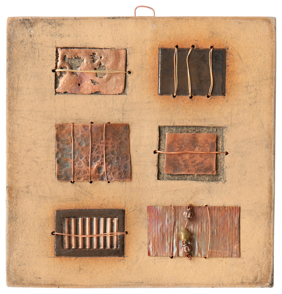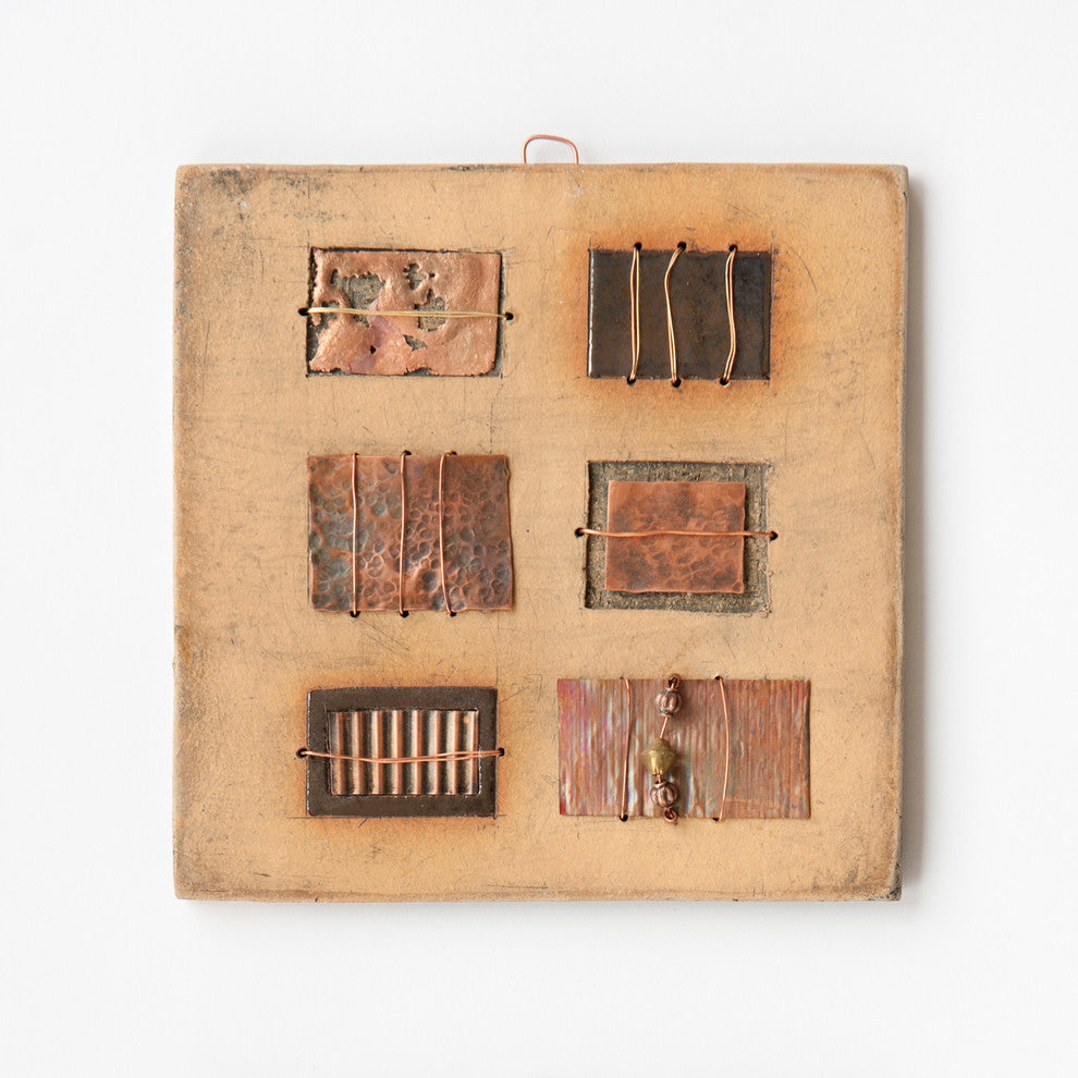Handcrafted of quality materials, the Handmade Copper and Clay Decorative Tile is the perfect way to add a touch of decor to your space with a natural feel. With neutral tones and etched copper plates, wires and beads, this clay tile will bring a new warmth to your space! This handmade tile measures 6 inches wide and 6 inches high and is ideal with other decorative items on a gallery wall and can be hung using the small copper hook attached.