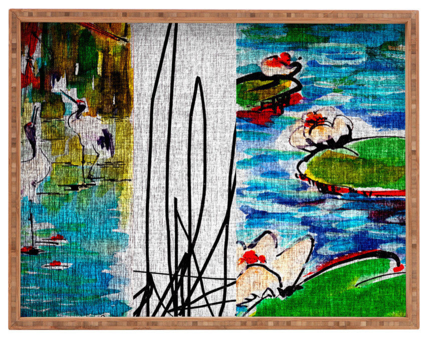 Ginette Fine Art Red Crowned Cranes Rectangular Tray, 18"x14"