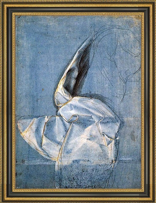 18" x 27" Giovanni Antonio Boltraffio Study of Drapery framed premium canvas print reproduced to meet museum quality standards. Our Museum quality canvas prints are produced using high-precision print technology for a more accurate reproduction printed on high quality canvas with fade-resistant, archival inks. Our progressive business model allows us to offer works of art to you at the best wholesale pricing, significantly less than art gallery prices, affordable to all. This artwork is hand stretched onto wooden stretcher bars, then mounted into our 3 3/4" wide gold finish frame with black panel by one of our expert framers. Our framed canvas print comes with hardware, ready to hang on your wall. We present a comprehensive collection of exceptional canvas art reproductions by Giovanni Antonio Boltraffio.
