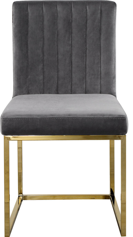 Giselle Velvet Dining Chairs, Set of 2, Gray, Gold Base