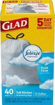 Glad® 78361 Odor Shield Tall Kitchen Drawstring Bag, 13 Gallon, 40 Count
