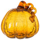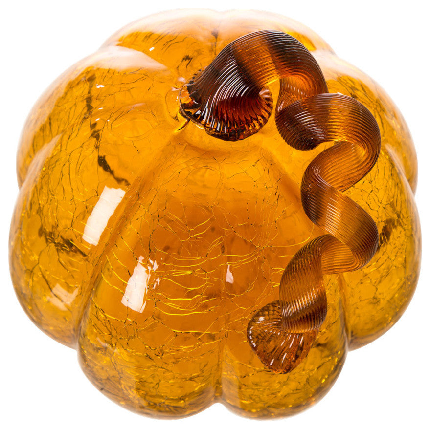 Celebrate the beauty of fall with this stunning and unique decorative accent. Made from mouth-blown and handcrafted glass, this glass pumpkin features gorgeous curves and a rich amber crackled design. Style it as part of a charming Autumn table centerpiece, on a shelf, or on a side table to spread your love of the season around your home in an elegant, effortless way.