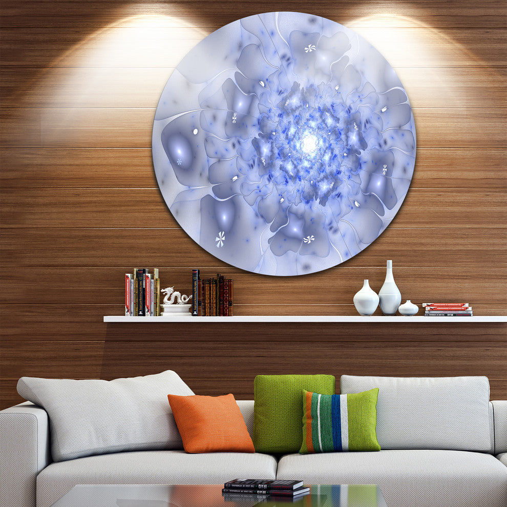 Bring Contemporary Abstraction to your home with this large Circle Metal wall art. This Glittering Gold Purple Fractal Flower Metal Artwork makes it the focal point of any room or office.