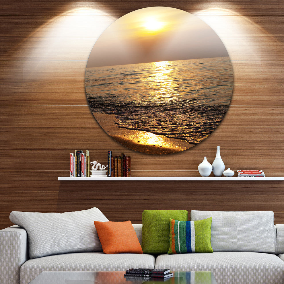 Gloomy Beach And Waters At Sunset, Beach Round Metal Wall Art, 11"