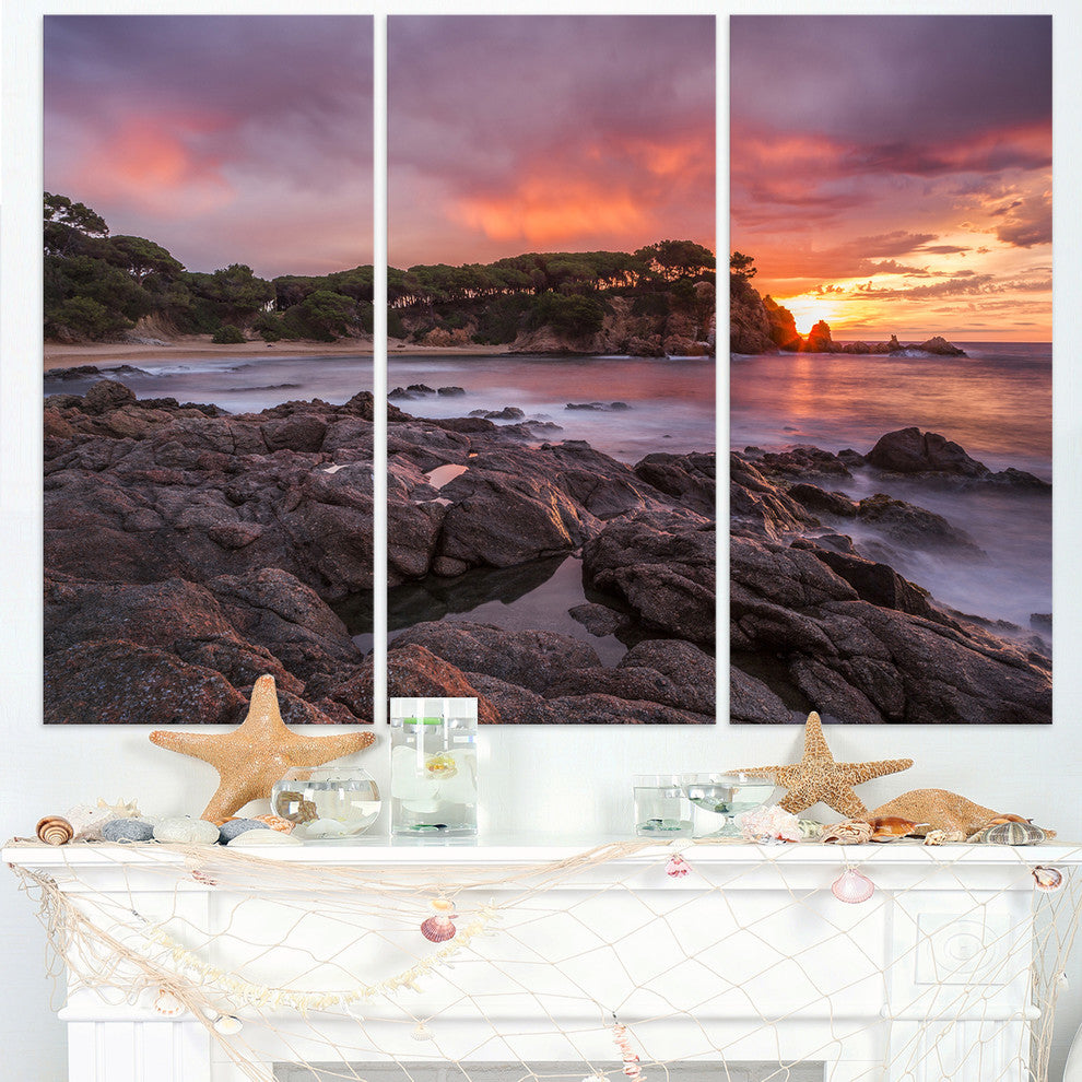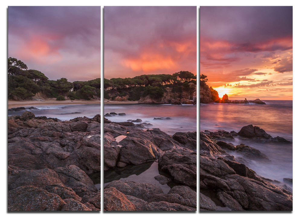 "Gloomy Seashore With Large Rocks" Metal Wall Art, 3 Panels, 36"x28"