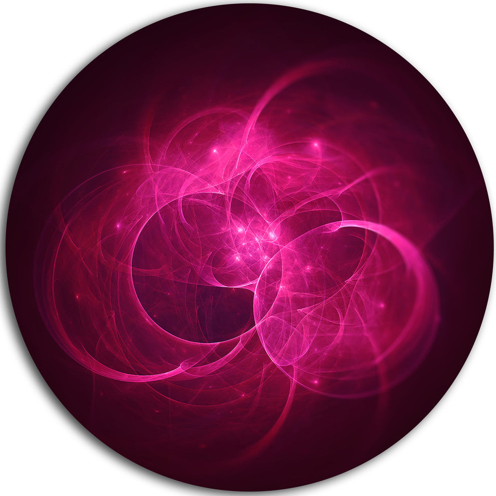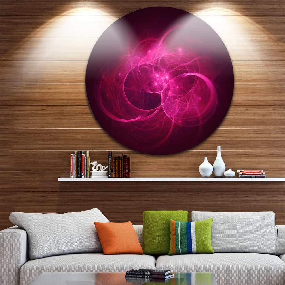 Glowing Magenta Circles, Abstract Digital Art Round Wall Art, 11"