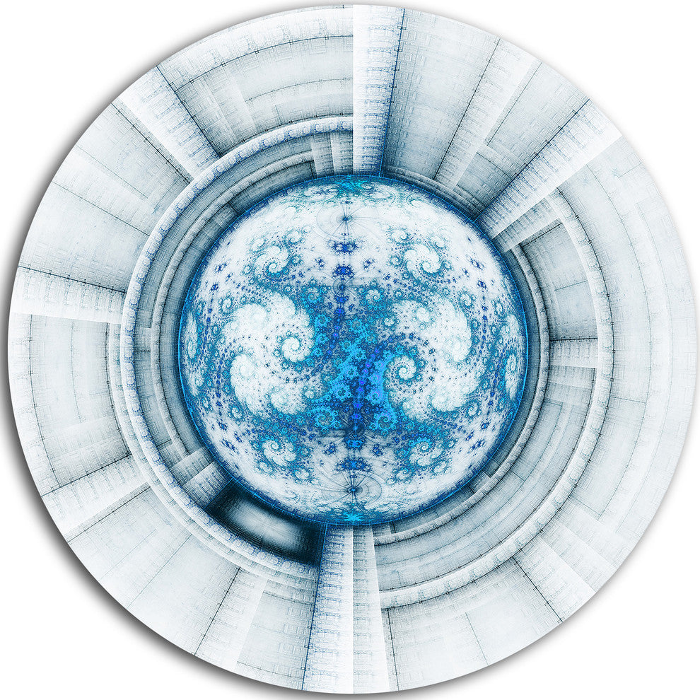 Bring Contemporary Abstraction to your home with this large Circle Metal wall art. This Glowing Soft Blue Fractal Flower Metal Artwork makes it the focal point of any room or office.