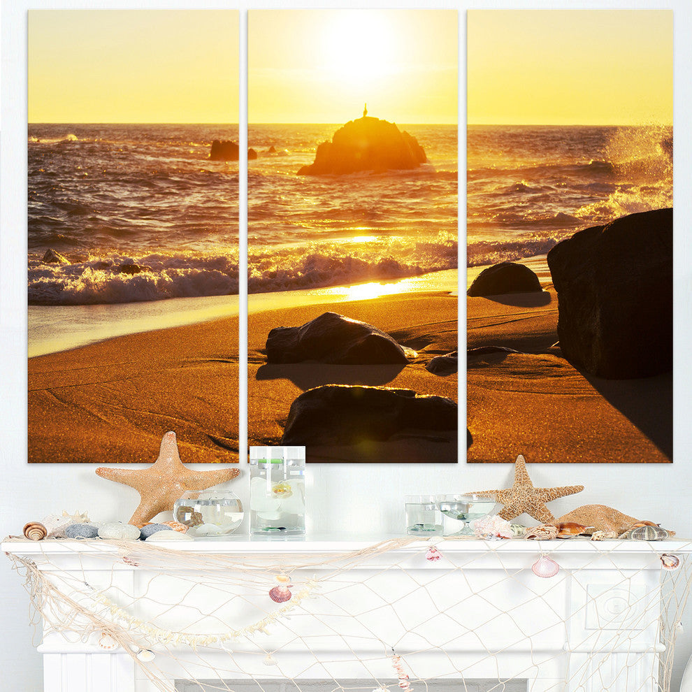 Glowing Waters of Seashore, Modern Beach Metal Wall Art, 36x28, 3 Panels