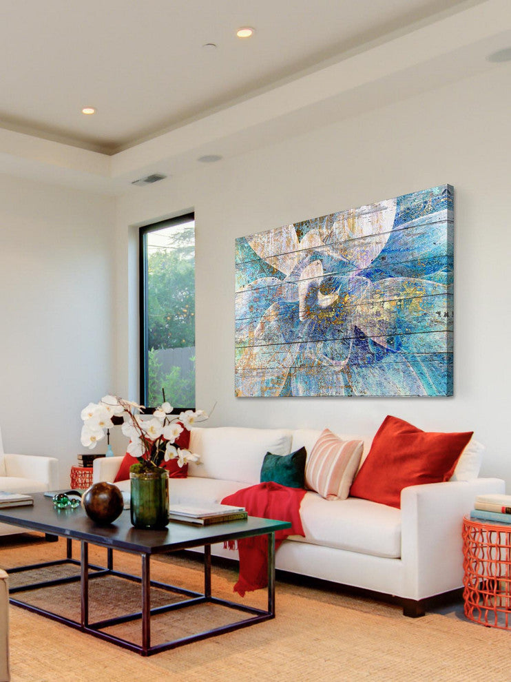 "Gold Blue Succulent" Painting Print on Canvas by Irena Orlov features vivid tones and supple artistry. Printed on canvas, this 18 inch wide by 12 inch tall piece will be an exceptional addition to any room. Fine art canvas print from the Marmont Hill Art CollectiveProfessionally hand stretchedGallery wrapped in sustainable, non-warping woodArrives ready to hangMade in the USAIncludes a certificate of authenticity