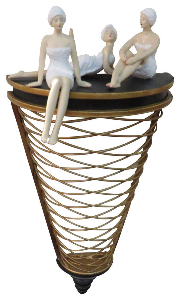 Simple and elegant, our demilune wall shelves have an open design that allows the wall to show through. The gold finish is perfectly offset by the enameled black accents. Handcrafted of iron and tole. Key holes on the back for easy hanging. Sturdy enough to hold heavy objects. Available in two sizes (each sold separately). Finished in Italian gold with black accents. Size: 18'''' H x 9. 75'''' W x 5. 25'''' Deep Weight: 2. 1 lbs. Heirloom Quality - Expertly hand crafted and hand finished Due to the hand crafted nature of this piece, each piece may have subtle differences.