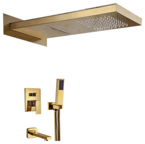 Gold Wall Mount Shower Set With Handheld Shower Head and Tub Faucet Spout