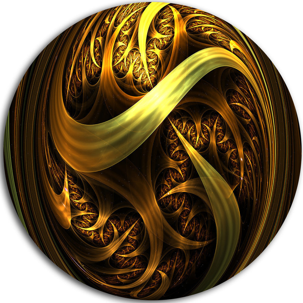 Golden Fractal Sphere In Dark, Abstract Abstract Disc Artwork, 38"