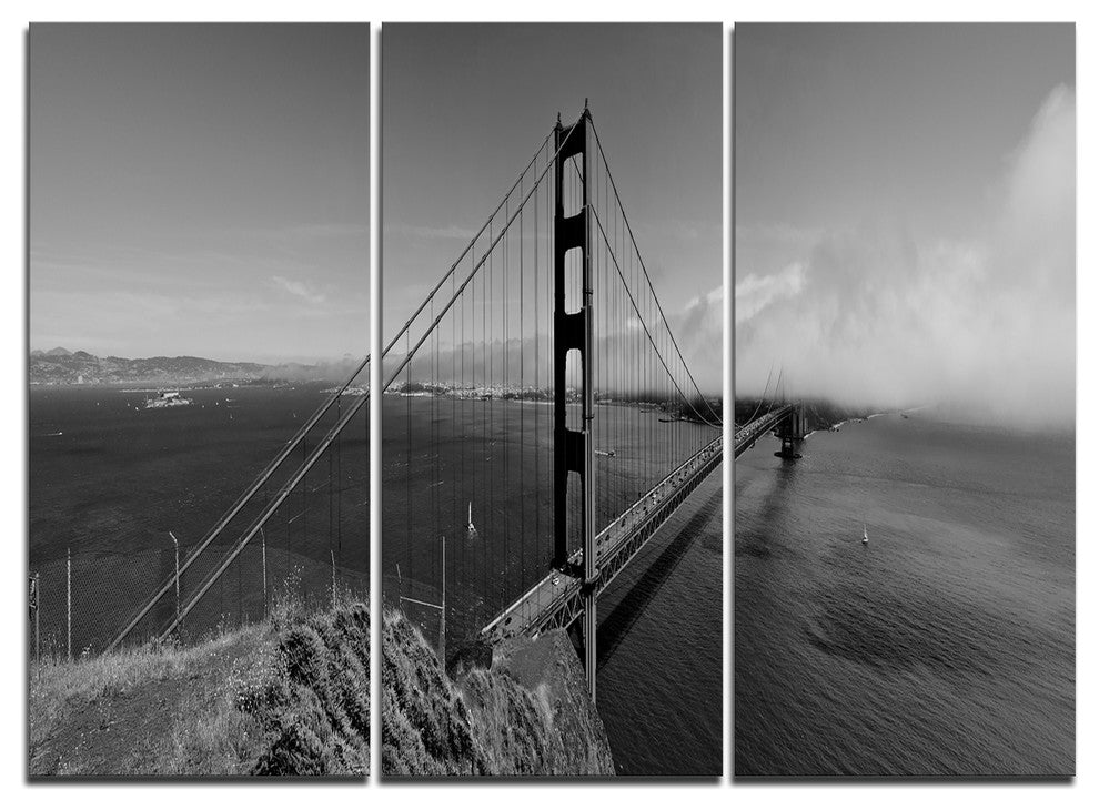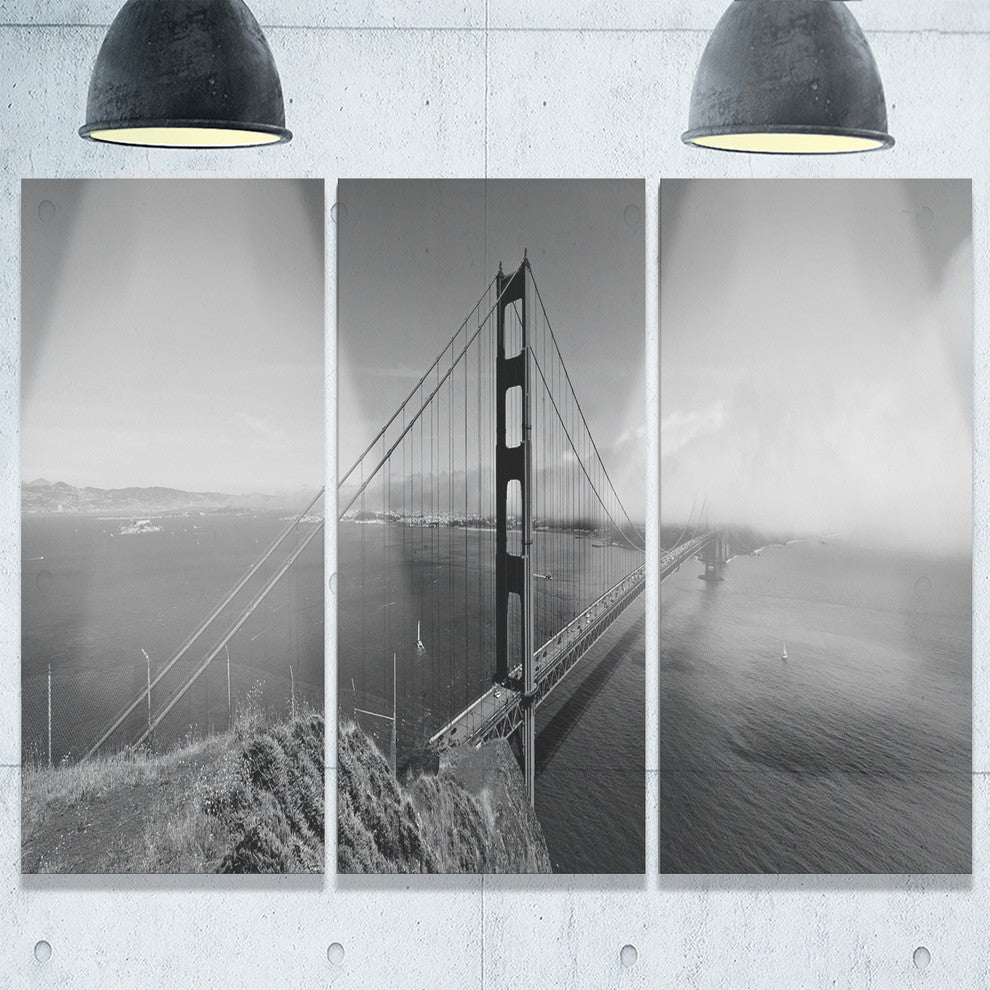 "Golden Gate Bridge in Gray Panorama" Metal Wall Art, 3 Panels, 36"x28"