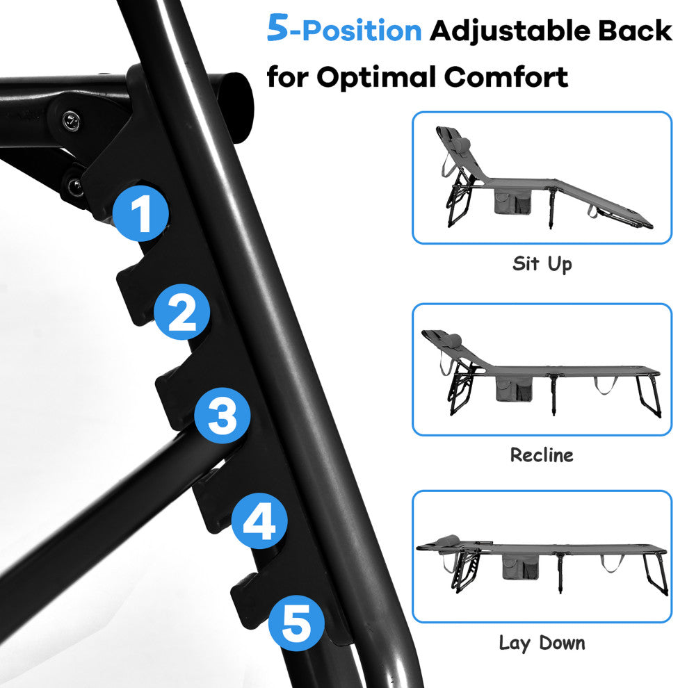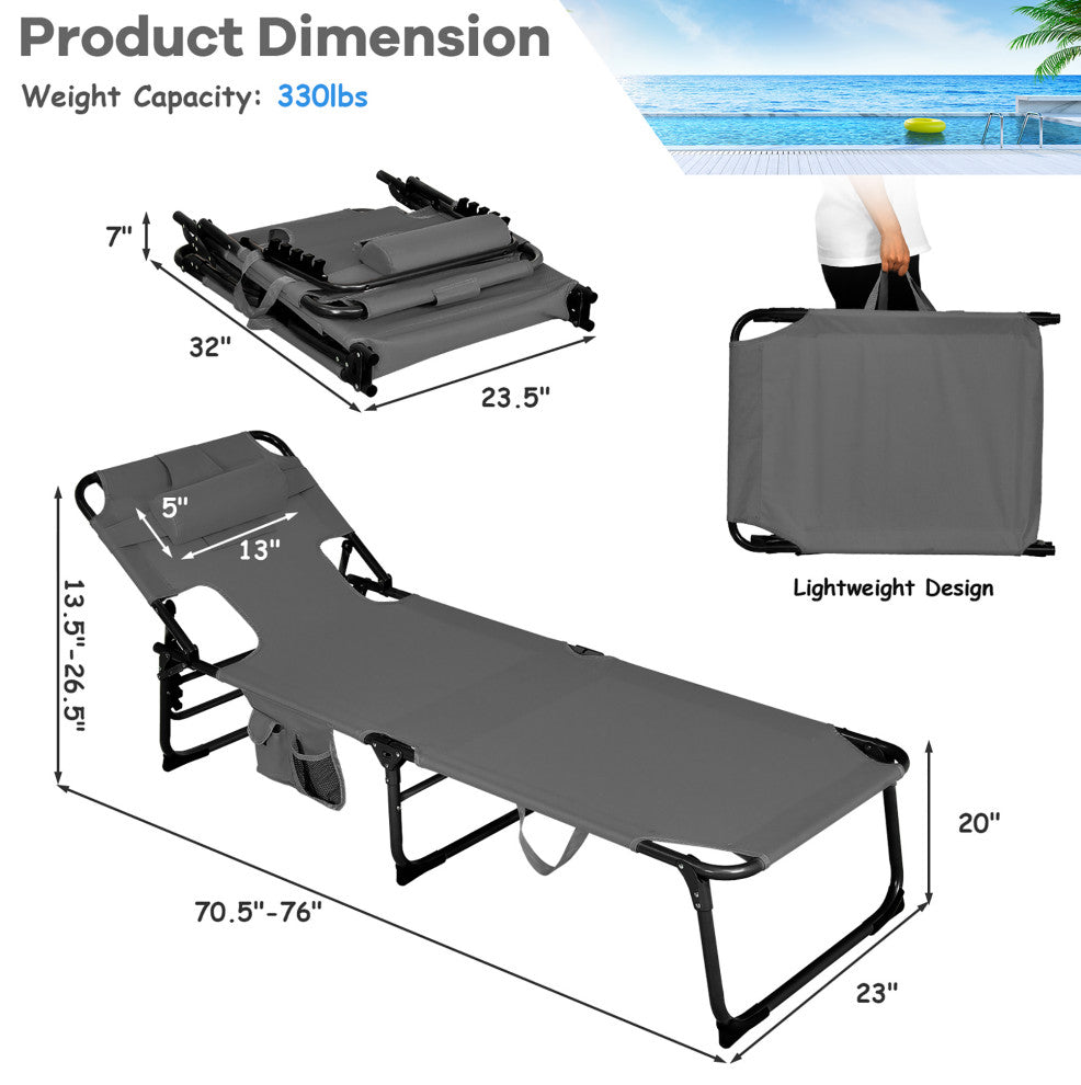 Goplus Outdoor Beach Lounge Chair Folding Chaise Lounge with Pillow Grey