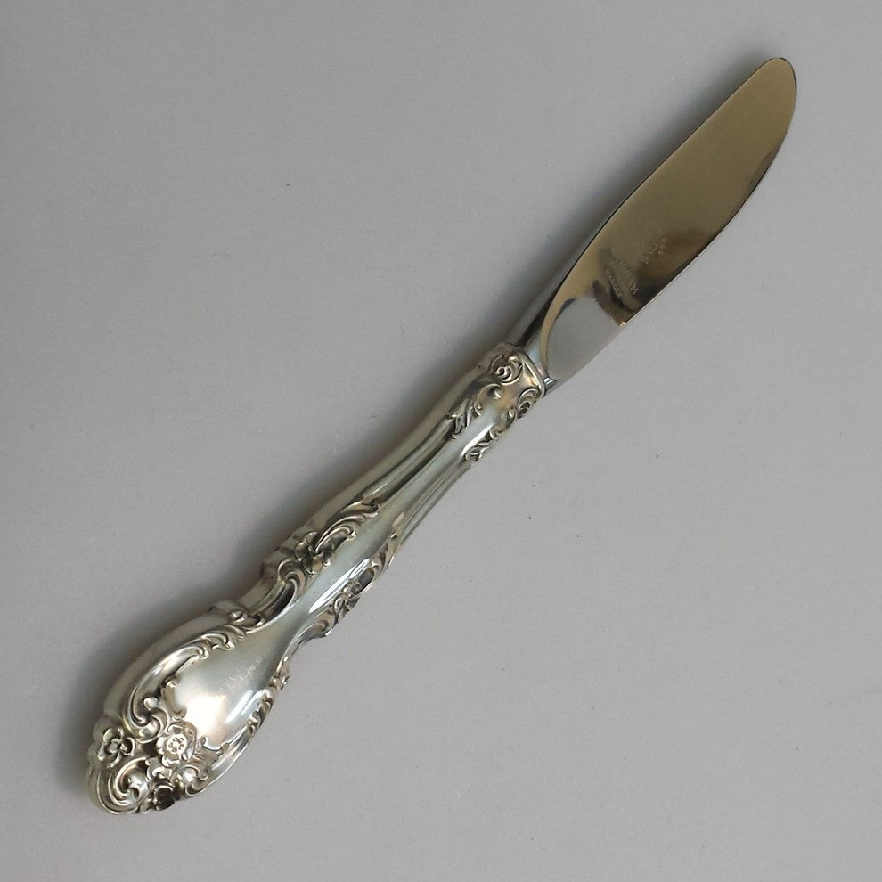 First released in 1948, this Sterling Silver pattern is evocative of the rosewood carvings from the Melrose Mansion of Natchez, Mississippi. It strikes a delicate balance between being ornate as well as somewhat subdued. All items are brand new, never used.