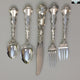 This classic sterling silver pattern was introduced in 1897, and is evocative of the Rococo style. The pleasing scrolls extending around the tines and bowls strikes a delicate balance with the stately shell design. This 5 piece place setting includes a place knife 9", place fork 7.5", salad fork 6.75", place soup spoon 6.75" and a teaspoon 6". All items are brand new, never used.