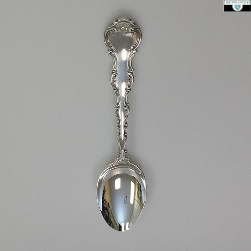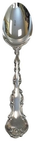This classic sterling silver pattern was introduced in 1897, and is evocative of the Rococo style. The pleasing scrolls extending around the tines and bowls strikes a delicate balance with the stately shell design. All itmems are brand new, never used.