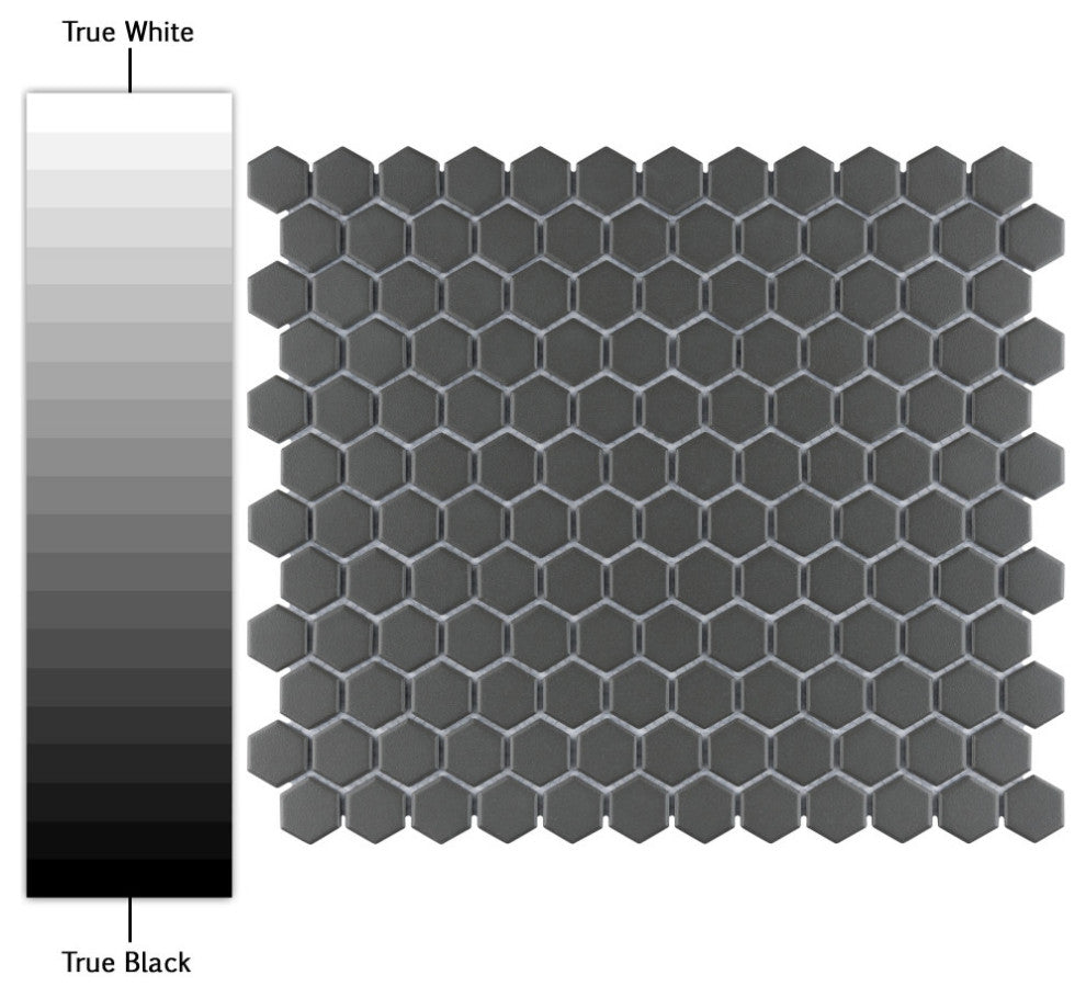 Transform your space into a tribute to retro design with our Gotham 1" Hex Black Unglazed Porcelain Mosaic Tile. As a modern deviation from the classic mosaic, this fresh option is a throwback to traditional retro design with a contemporary feel. Unglazed charcoal black hexagons are arranged on an interlocking mesh to create a seamless installation. This minimalistic geometric porcelain mosaic is unique yet simplistic enough to integrate into any design, ranging from traditional style renovations to modern home projects. Its impervious, frost-proof and ADA compliant features make this an ideal tile for both commercial and residential indoor and outdoor use, including backsplashes, bathrooms, showers, kitchens and entryways. Tile is the better choice for your space. This tile is made from natural ingredients, making it a healthy choice as it is free from allergens, VOCs, formaldehyde and PVC. Note: Due to the unglazed nature, we recommend sealing this tile.• 8.6 square feet, 10 pieces per case. Case weight is 18.73 lbs.• Grade 1, first-quality porcelain tile for floor and wall use• 10.25 in. width x 11.88 in. length x 0.25 in. thick mesh-mounted mosaic• Unglazed, slightly textured finish with a low sheen and uniform appearance in tone• PEI Rating IV has high resistance to abrasion and is suitable for heavy-duty residential and commercial kitchens, hotels, exhibition and sales rooms with some dirt conditions• Impervious tiles have a water absorption of less than 0.5% for indoor and outdoor use and are frost resistant• This tile is ADA approved for slip resistance with a DCOF value of 0.42 or higher.• Completely frost resistant for indoor or outdoor applications; use a latex-modified thinset for acceptable bond strength• Please note: A sample of this product may be a partial piece cut from the full size tile in order to provide an affordable and convenient way for customers to judge the quality and finish of this item. Samples are not returnable.• Country of Origin: Thailand