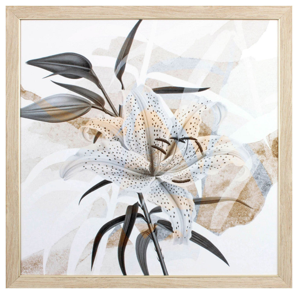 Part of the Angela Harris Collection. This watercolor botanical print is framed under glass with a light wood tone frame with a silver edge.
