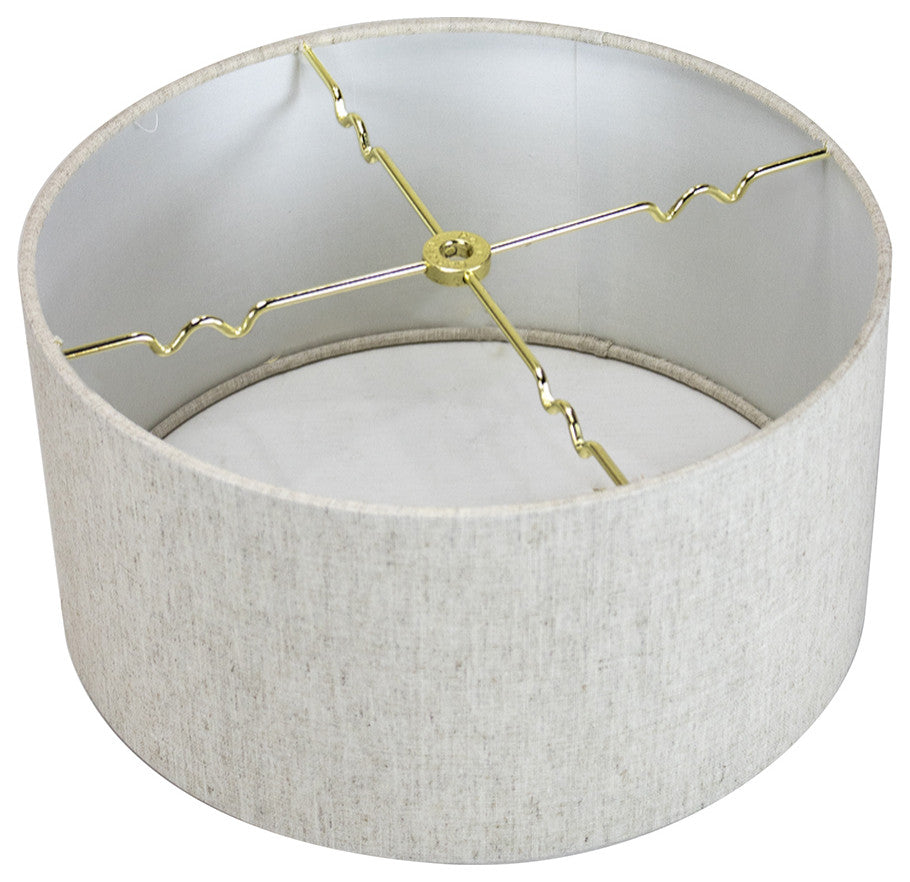 Home Concept Signature Shades feature the finest premium linen fabric. Durable Upholstery-Quality fabric means your new lampshade will last for decades. It wont get brittle from smoke or sunlight like less expensive fabrics. Heavy brass and steel frames means your shades can withstand abuse from kids and pets. It''s a difference you can feel when you lift it Hard Back Textured Oatmeal with White Lining Drum Shape Lampshade 16 Top x 16 Bottom x 9 Slant Height Includes Spider with notches Fitter and 1 drop Top shelf hardback lampshade found in better lighting showrooms. Durable Hotel quality shade.