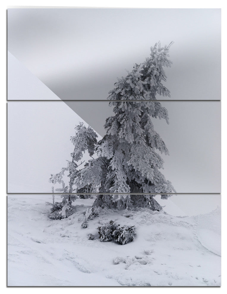 "Grayscale Valley in Frost" Photo Metal Wall Art, 3 Panels, 28"x36"