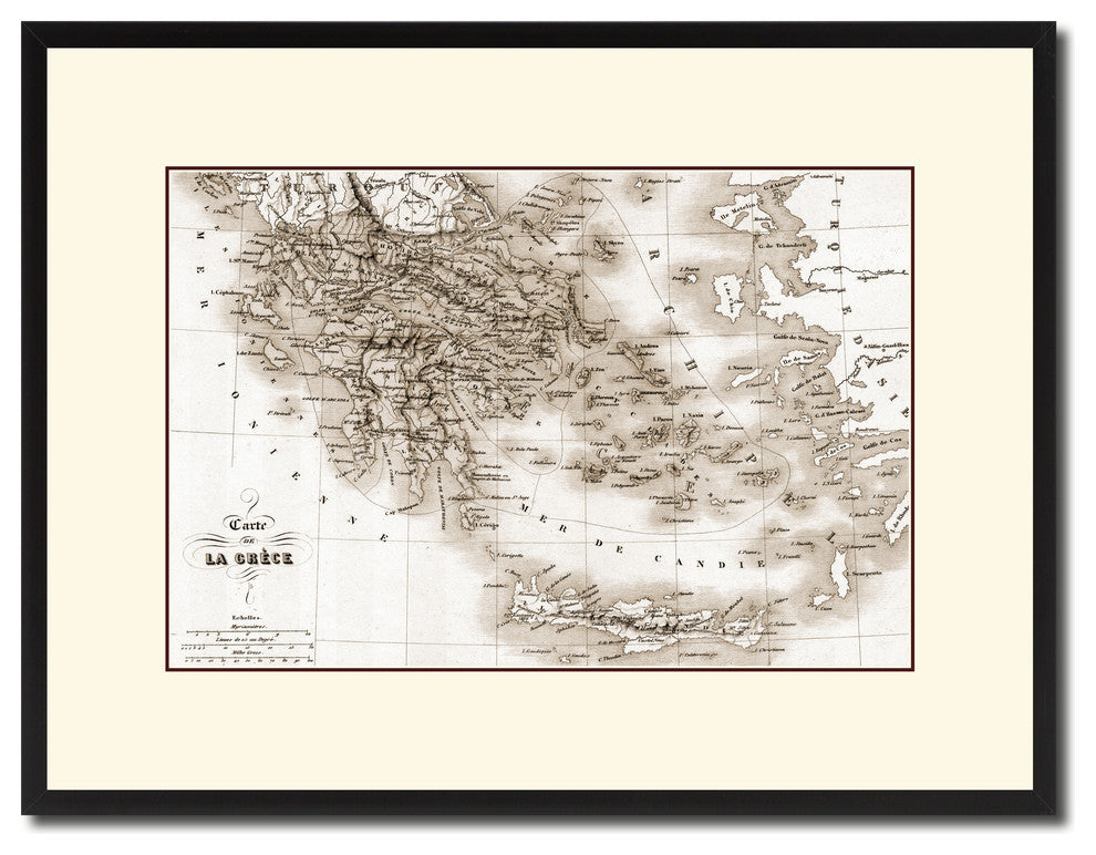 Greece Vintage Sepia Map Canvas Print, 16"x21"