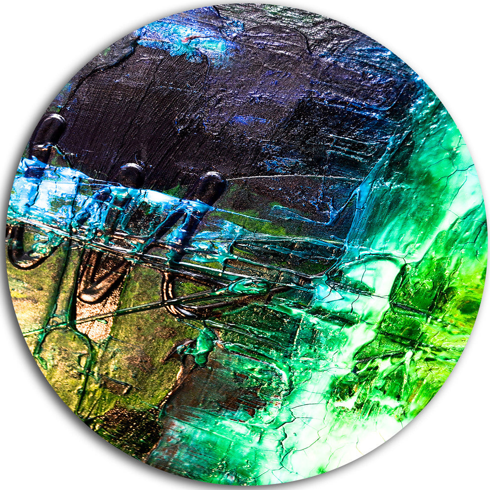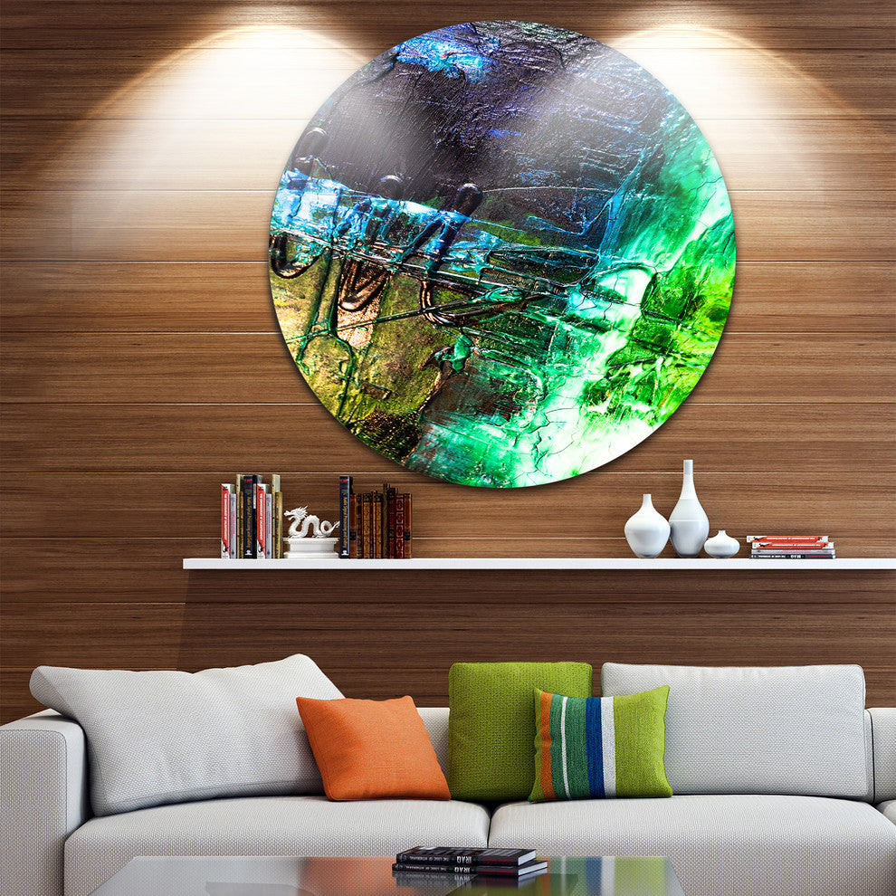 Green, Blue Abstract Structure, Abstract Round Metal Wall Art, 11"