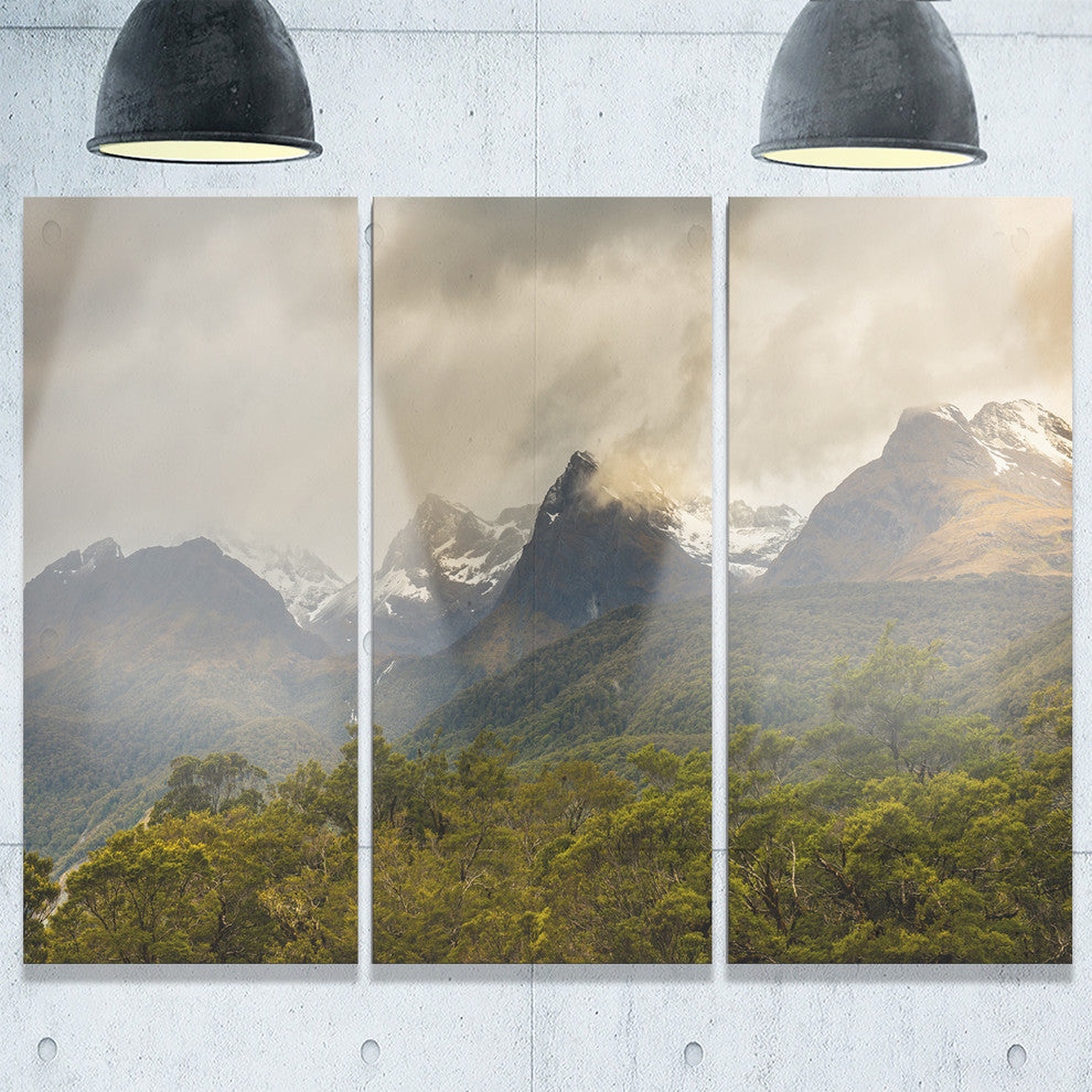 "Green Mountains Under Stormy Clouds" Metal Wall Art, 3 Panels, 36"x28"