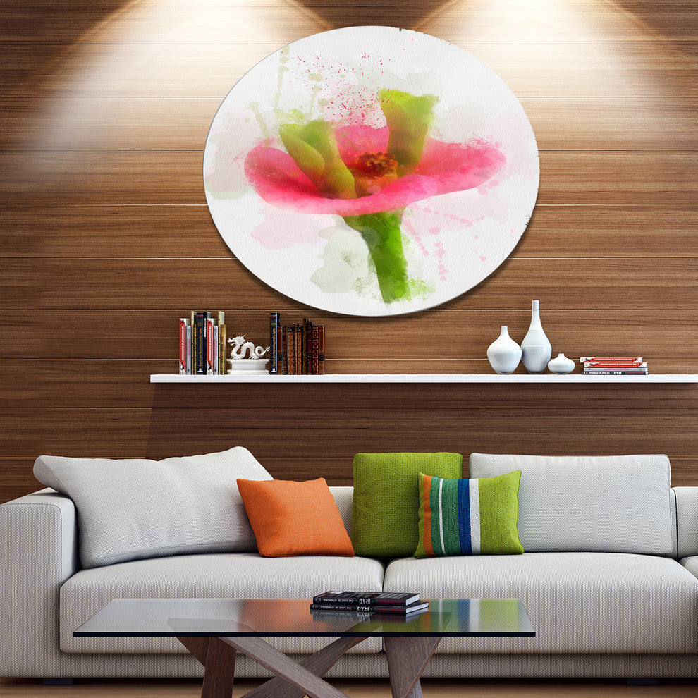 Green Red Flower Sketch Watercolor, Floral Round Metal Wall Art, 11"