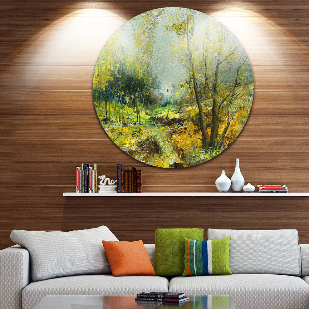 Green Yellow Forest, Landscape Disc Metal Artwork, 11"