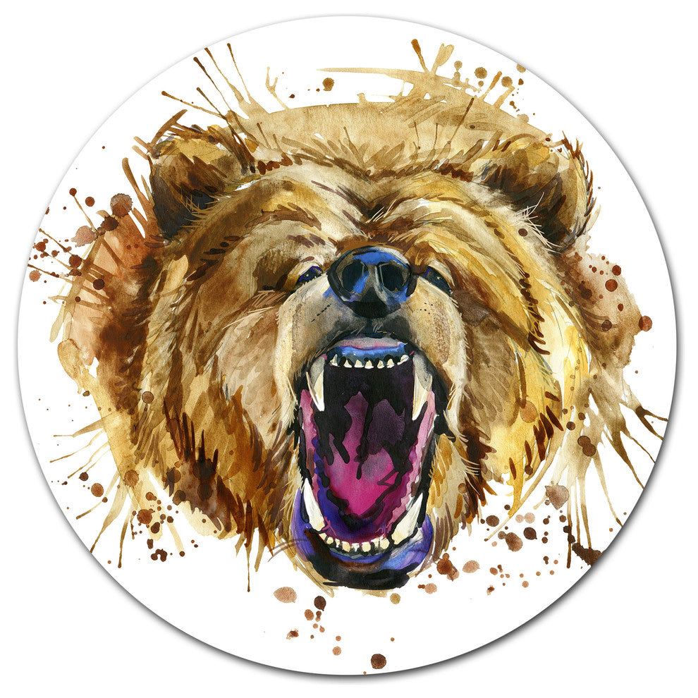 Growling Grizzly Bear Watercolor, Animal Round Wall Art, 23"