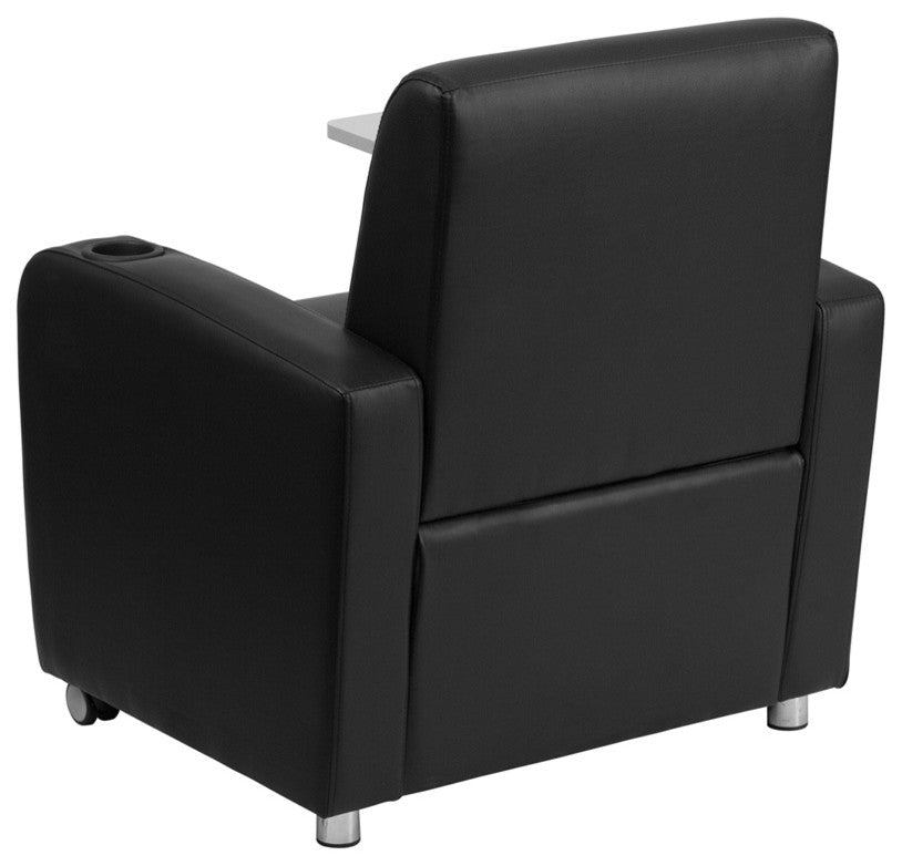 You will be sure to impress all visitors with this tablet arm lounge chair. The tablet arm offers a convenient surface for your laptop or paperwork. You can create a dedicated space for studying or reading in the home. The plush seat offers great comfort when sitting for an extended period of time. The front wheel casters are provided for an easy swivel movement. For residential use, it will be perfect in any room design.Features: Contemporary Design Raised Tablet Arm Swings 360 Degrees Light Gray Tablet Finish Cup Holder in left arm Plush Foam Seat Taut Seat and Back Chrome Feet with Plastic Floor Glides LeatherSoft Upholstery LeatherSoft is leather and polyurethane for added Softness and Durability CA117 Fire Retardant Foam Tablet Size: 13.75"W x 10"D x 7.5"H from seat; 18.25"H from floor Tablet is 1.25"H from armProduct SpecsP: Seat width: 21"W Seat depth: 21"D Seat height: 19"H Width: 31" - 41"W Height: 35"H Depth: 27"D Back size: 22"W Back height from seat: 19" Arm height from floor: 24"