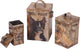 GUILD MASTER 203527S Tin Canisters. Set of three tin canisters with natural aged finish. Hand painted graphics and dog art.. Collection: Graphic Tins. Finish: Handpainted. Material: Metal. Dimension(in): 14(H) x 10(W) x 8.3(L).