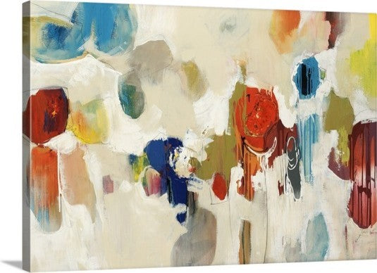 Gallery-wrapped canvas entitled, "Gum Drop".Big, colorful swirls of paint on this horizontal photograph of an abstract painting.Our wrapped canvases feature a proprietary design that prevents warping or sagging over time. By using archival inks and artist-grade canvas, our premium canvases are sure to add that extra touch to any space. Lastly, our canvases are finished with a closed back that incorporates pre-installed hanging hardware for easy installation.