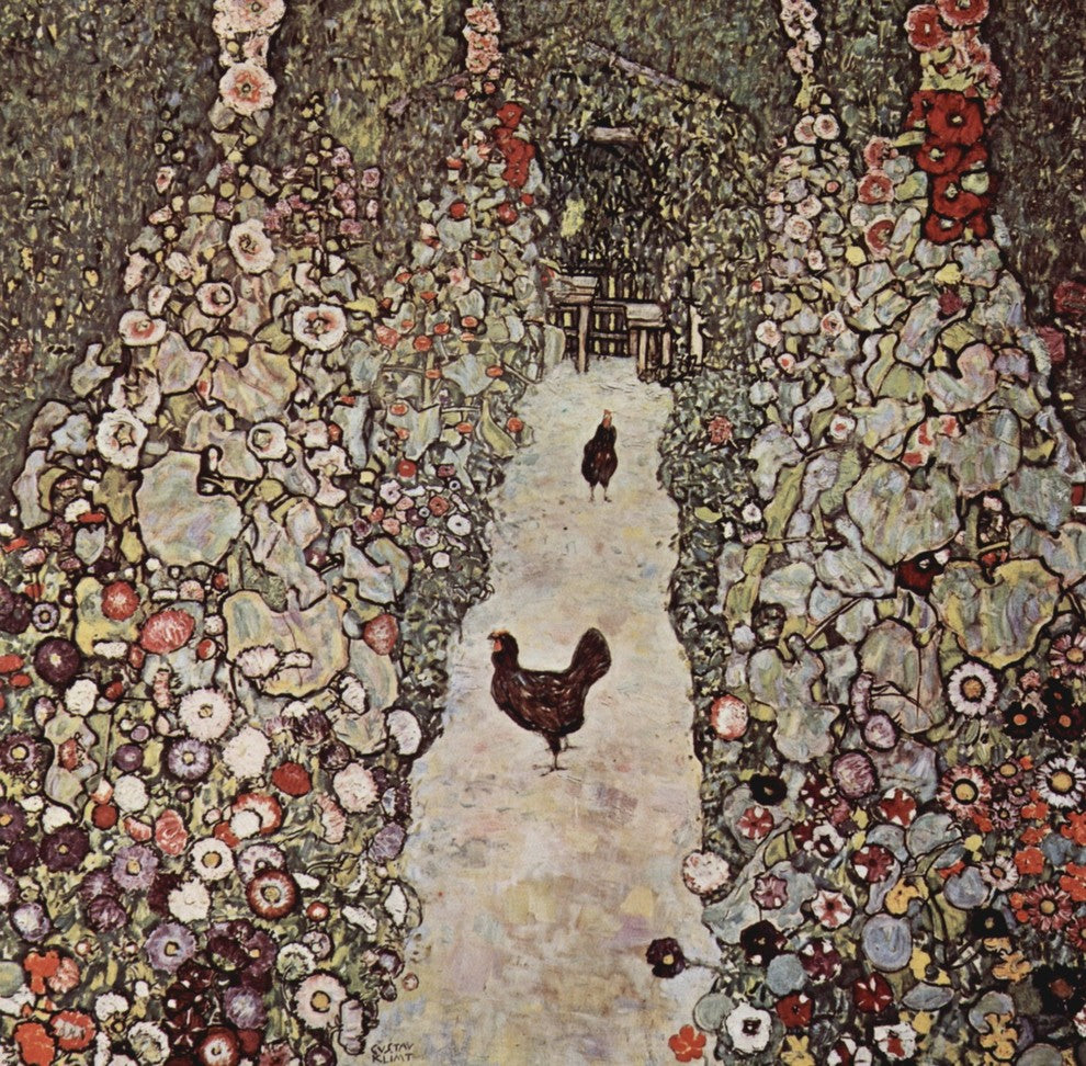 Gustav Klimt Garden with Roosters - 20" x 20" Premium Canvas Print