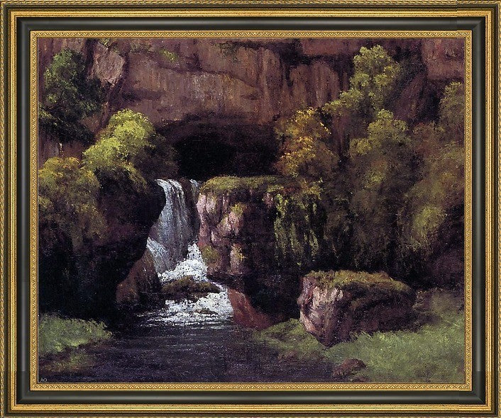 16" x 20" Gustave Courbet The Source of the Lison framed premium canvas print reproduced to meet museum quality standards. Our Museum quality canvas prints are produced using high-precision print technology for a more accurate reproduction printed on high quality canvas with fade-resistant, archival inks. Our progressive business model allows us to offer works of art to you at the best wholesale pricing, significantly less than art gallery prices, affordable to all. This artwork is hand stretched onto wooden stretcher bars, then mounted into our 3 3/4" wide gold finish frame with black panel by one of our expert framers. Our framed canvas print comes with hardware, ready to hang on your wall. We present a comprehensive collection of exceptional canvas art reproductions by Gustave Courbet .