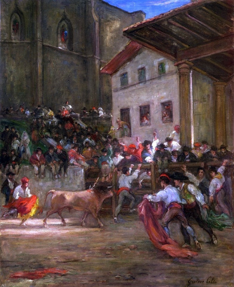 20" x 25" Gustave Henri Colin El Picador con el Toro premium canvas print reproduced to meet museum quality standards. Our museum quality canvas prints are produced using high-precision print technology for a more accurate reproduction printed on high quality canvas with fade-resistant, archival inks. Our progressive business model allows us to offer works of art to you at the best wholesale pricing, significantly less than art gallery prices, affordable to all. We present a comprehensive collection of exceptional canvas art reproductions by Gustave Henri Colin.