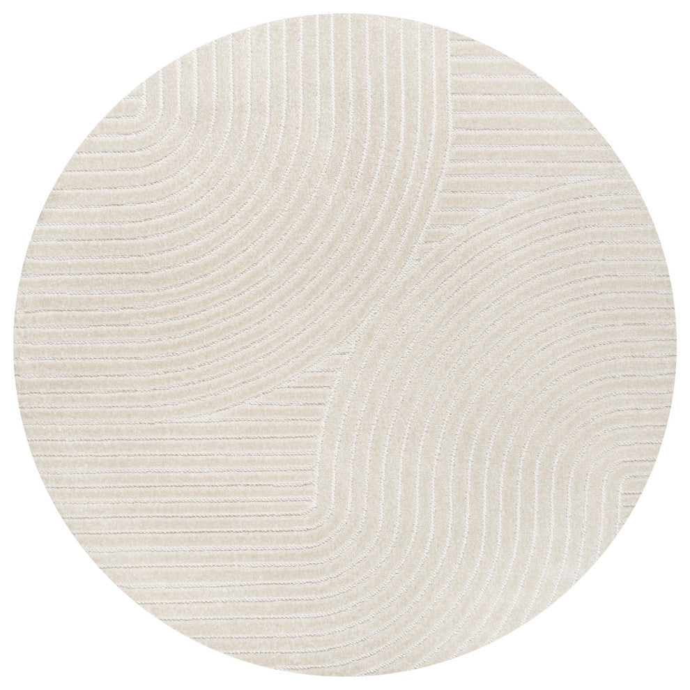 This Scandinavian striped geometric rug makes a statement with its minimalist simplicity. The two-tone color palette adds graphic punch to your home in a high-low pile that accentuates the pattern. Use this easy-care, family-friendly rug on the porch or deck, or in high traffic spaces like a living room, dining room or entry.Features:• Durable high-low design with a short 0.25" pile• Curved cream lines form an understated pattern on an ivory background• Made from easy-care polypropylene - just sweep, vacuum or hose down with mild soap and water• 100% Polypropylene• No backing, use of rug pad is recommended (sold separately)• Power Loomed in Turkiye• Actual Dimension: 7 ft x 7 ft. Round• Color: Ivory/Cream• Thickness measures: 0.25 in.• Available in multiple sizes and/or colorsRug Care:• Vacuum regularly and spot clean as needed; avoid direct and continuous exposure to sunlight; use brushless vacuum; remove spills immediately; if liquid, blot with clean, undyed cloth by pressing firmly around the spill to absorb as much as possible; for hard to remove stains, professional rug cleaning is recommended; store in a dry, well ventilated area and rotate for consistent wear• Packing and shipping may cause temporary creases in rugs, which will flatten out after a week on the floor; to expedite the process, try back-rolling your rug before laying it down, and then allow ample time for the remaining creases to relax• Please Note: Due to differences in monitors, some rug colors may vary slightly. Lengths and widths may vary from the published dimensions. Patterns may vary slightly according to shape and size selected.About us:Style your floors with JONATHAN Y. By combining fine craftsmanship and design, this New York creative studio is bringing fashion to your floors. The collection mixes sustainable organic materials, vibrant colors and trend worthy styles to create JONATHAN Y''s distinctive catalog of rugs.