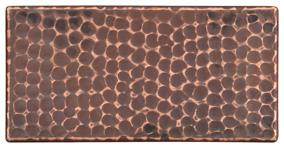 Copper Tiles are the ideal option to accentuate your home. You can create a focal point with an assortment of designs to choose from. Mix and match with our other sized tiles to create an eye-catching design. 3" x 6" Hammered Copper Tile Package of 4 Features:Design: Hammered CopperOuter Dimensions: 3" x 6"Quantity of 4Finish: Oil Rubbed Bronze (Dark Brown)100% RecyclableComposition: 99.7% Pure Recycled CopperLead Free (less than .01%)Patina: FiredWarranty: Limited LifetimeBRAND: Premier Copper ProductsImportant Note:DUE TO THE HANDCRAFTED NATURE OF THIS PRODUCT SMALL VARIANCES IN SIZE AND COLOR MAY OCCUR.Tile Packages Suggested Accessories: Hammered Copper 8-in Round Cylinder Pendant Light (L900DB)Small Hammered Copper Tissue Box Cover (TBCSDB)Copper Switchplate Single Duplex, 2 Hole Outlet Cover - Quantity 4 (SO2_PKG4)Copper Sink Wax Protectant (W900-WAX)