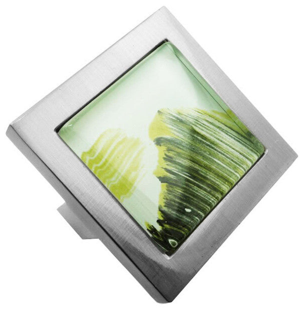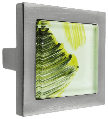 Hand Brush Abstract Moss Streaks Crystal Glass Brushed Nickel Square Manor Knob