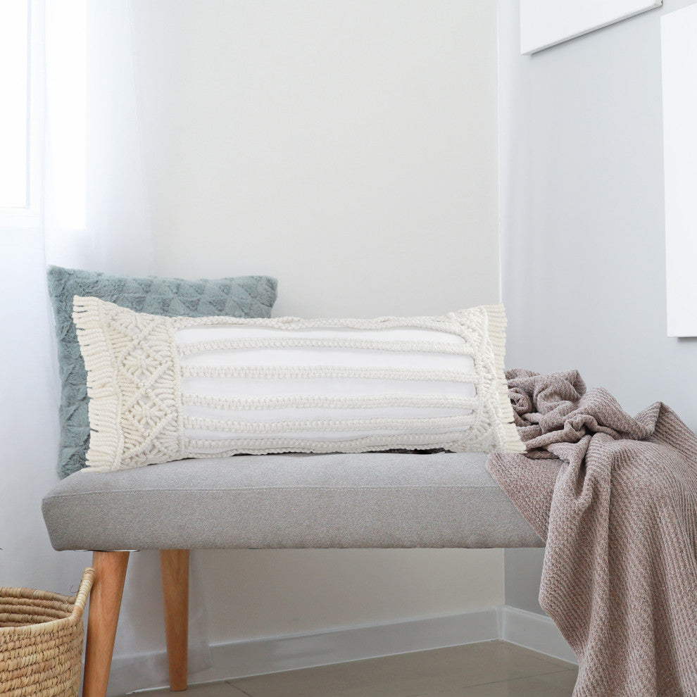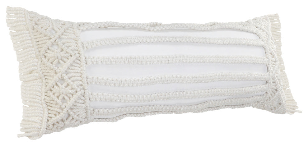 Hand Made Macrame Indoor Outdoor Throw Pillow, 14" X 36"