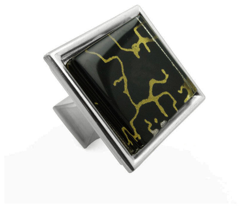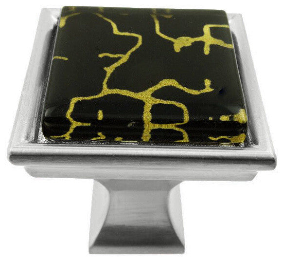 Hand Painted Abstract Golden Curls Crystal Glass Brushed Nickel Classic Knob