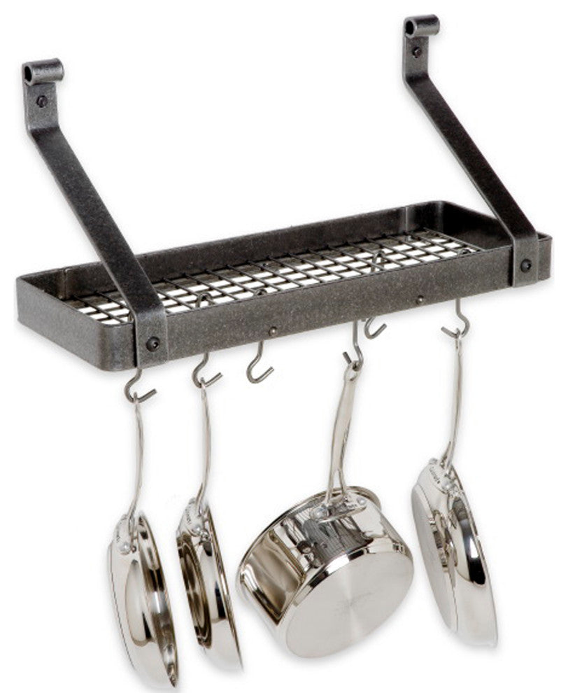 Handcrafted in the USA, this Enclume 24" Gourmet Bookshelf Wall Rack is our very best. Enclume''s Rolled Eye arms are beautifully designed and incredibly versatile in any home. Mounted to a wall, this sturdy rack works great in the kitchen, mudroom, entryway, office, outdoor living spaces or just about anywhere. Display and organize plants, cookware, bakeware, spices or use it as a pot rack and utensil holder to organize your Kitchen. It functions great in outdoor living spaces for your BBQ supplies, tools and sauces or even plants. In the entryway or mudroom, use it to organize hats, gloves, scarfs, coats and other items. Each rack is forged from thick, Solid Steel using traditional French metal working techniques. The Hammered Steel is beautiful and authentic, not powder coated, painted or plated. Includes 12 hooks and Solid Steel Grid. Assembly Instruction and Installation hardware are provided. Mounting directly into studs is recommended. Consult your handyman or local hardware store for mounting to drywall or your specific wall type. Includes 12 Hooks; 6 Straight and 6 Angled Multi-Purpose Pot Hooks. Real Solid Steel Frame, Professional Grade. Forged by our Skilled Craftsmen in the Pacific Northwest, USA. Assembly Required. Hardware and Installation Instructions Included. Mounting directly into studs recommended. Consult your handyman or local hardware store for mounting to drywall or your specific wall type.