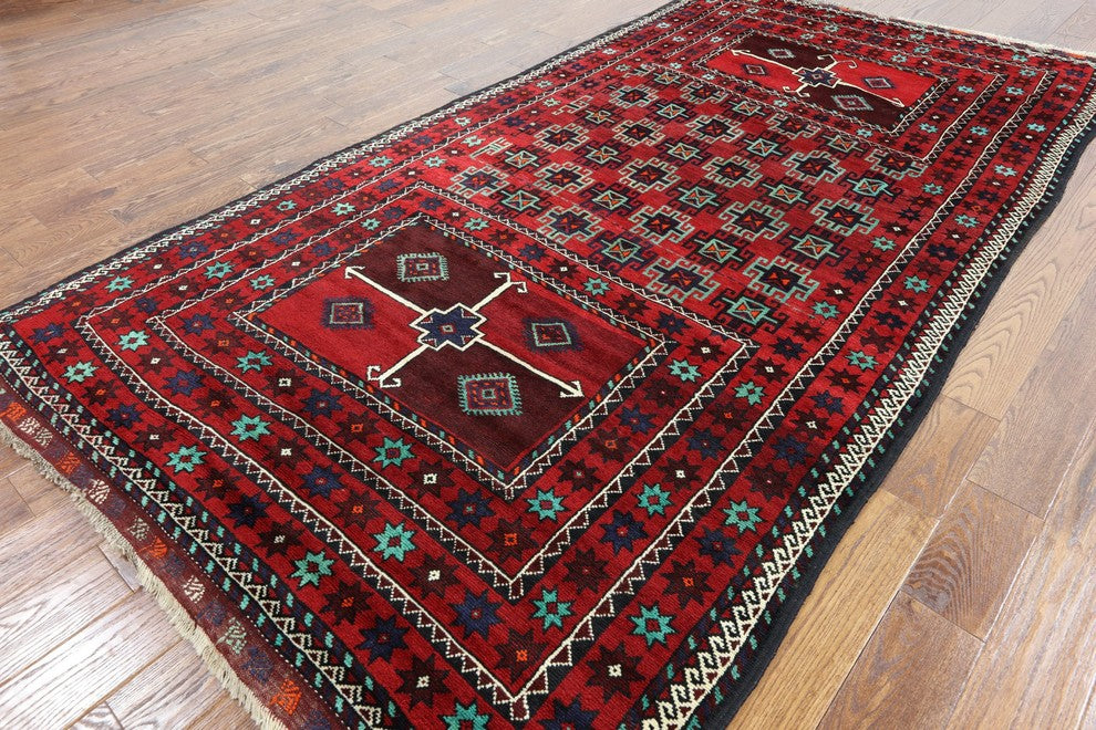 Handmade Persian Balouch Wool On Wool Area Rug 6'x10, W2338